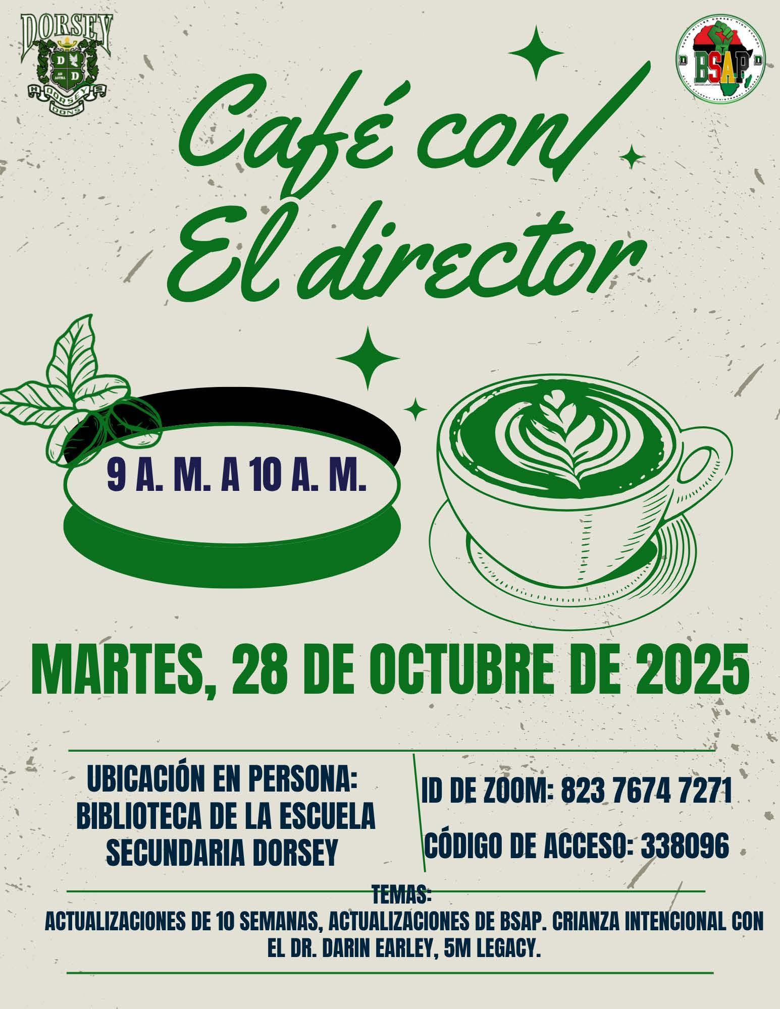 Please join us for Coffee with the Principal on Tuesday, October 28th, 9am-10:30am